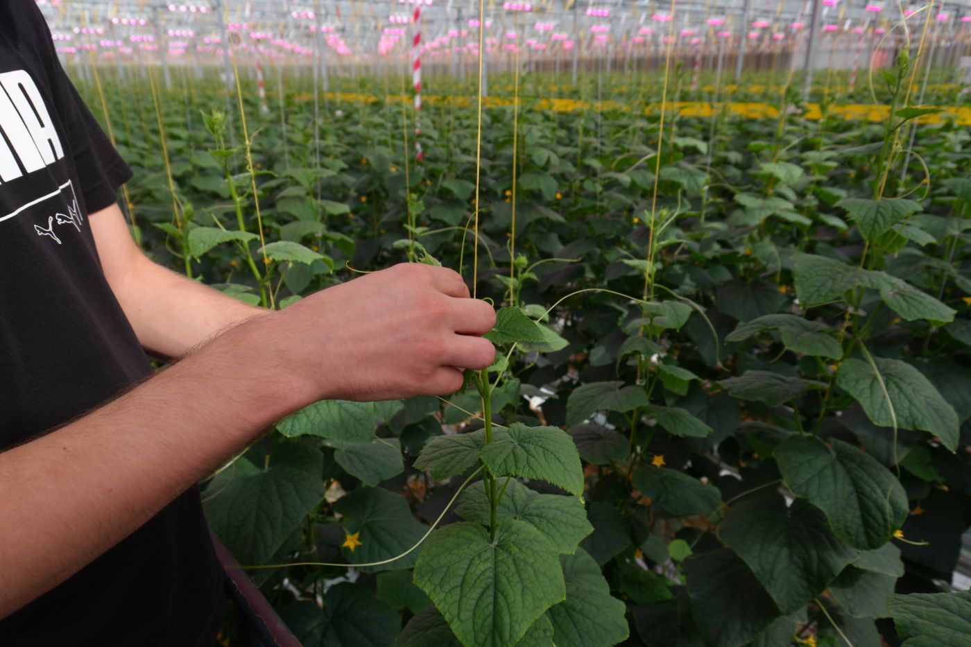 - ścinanie liści ogórków – usuwanie niepotrzebnych / suchych liści;